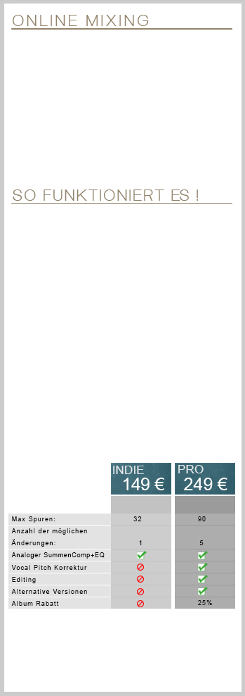 Wir mischen eure Songs. Nach euren Wünschen und mit druckvollem sattem analogem Sound.