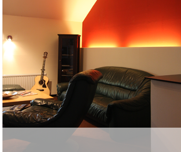 Unser großer, offener Chilloutbereich bietet genügend Platz zum Entspannen und um gemeinsam zu speisen.